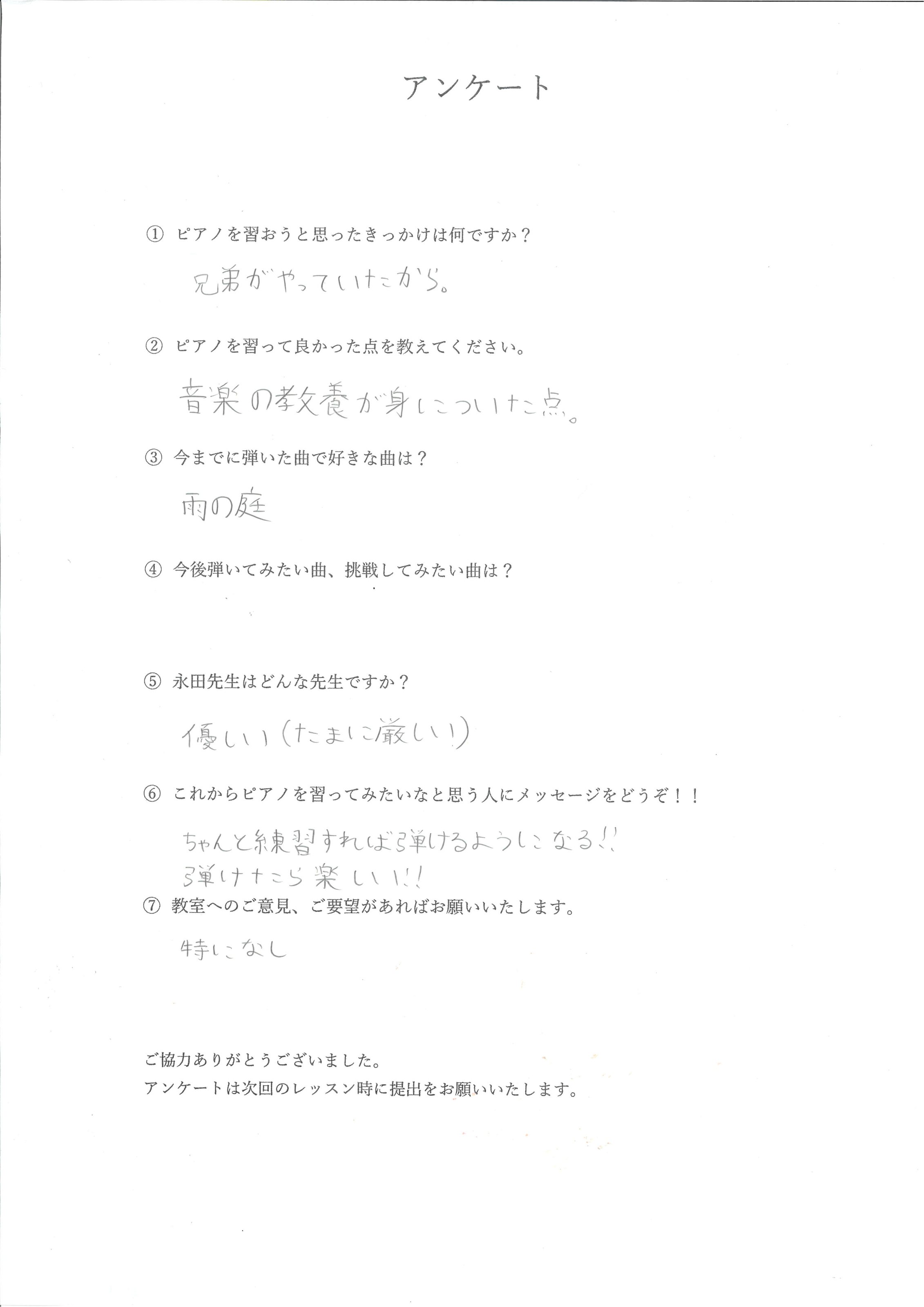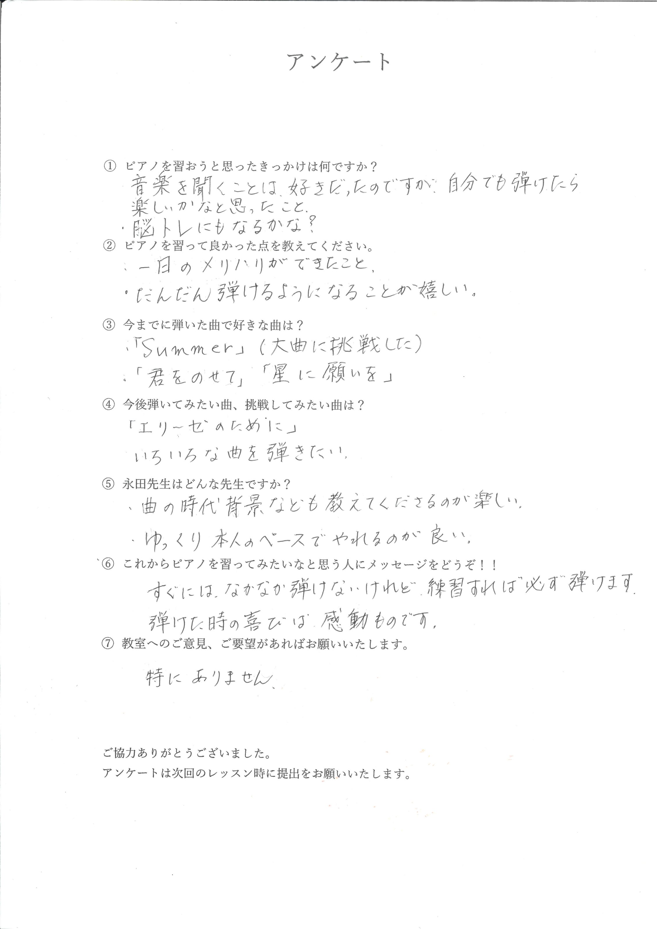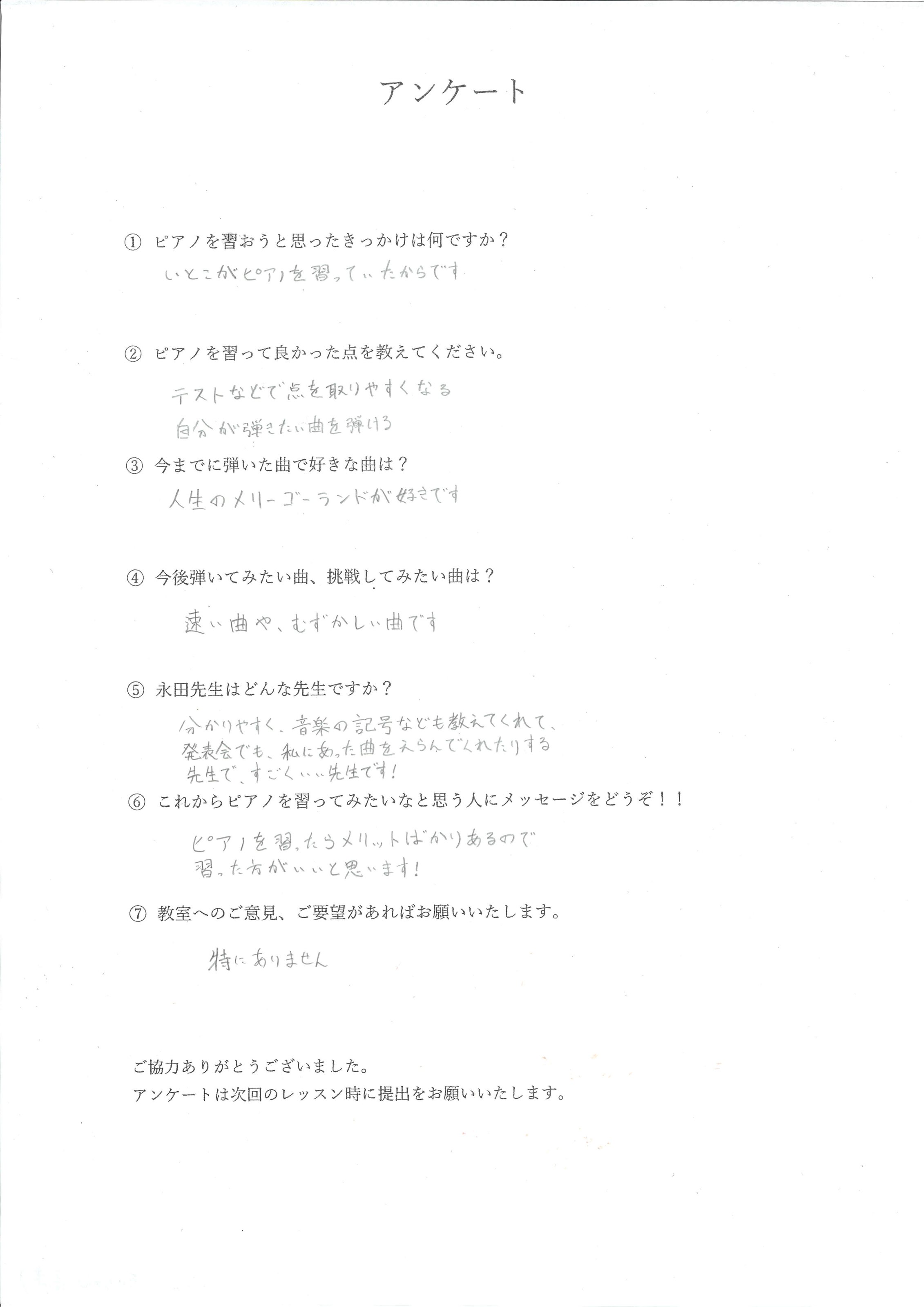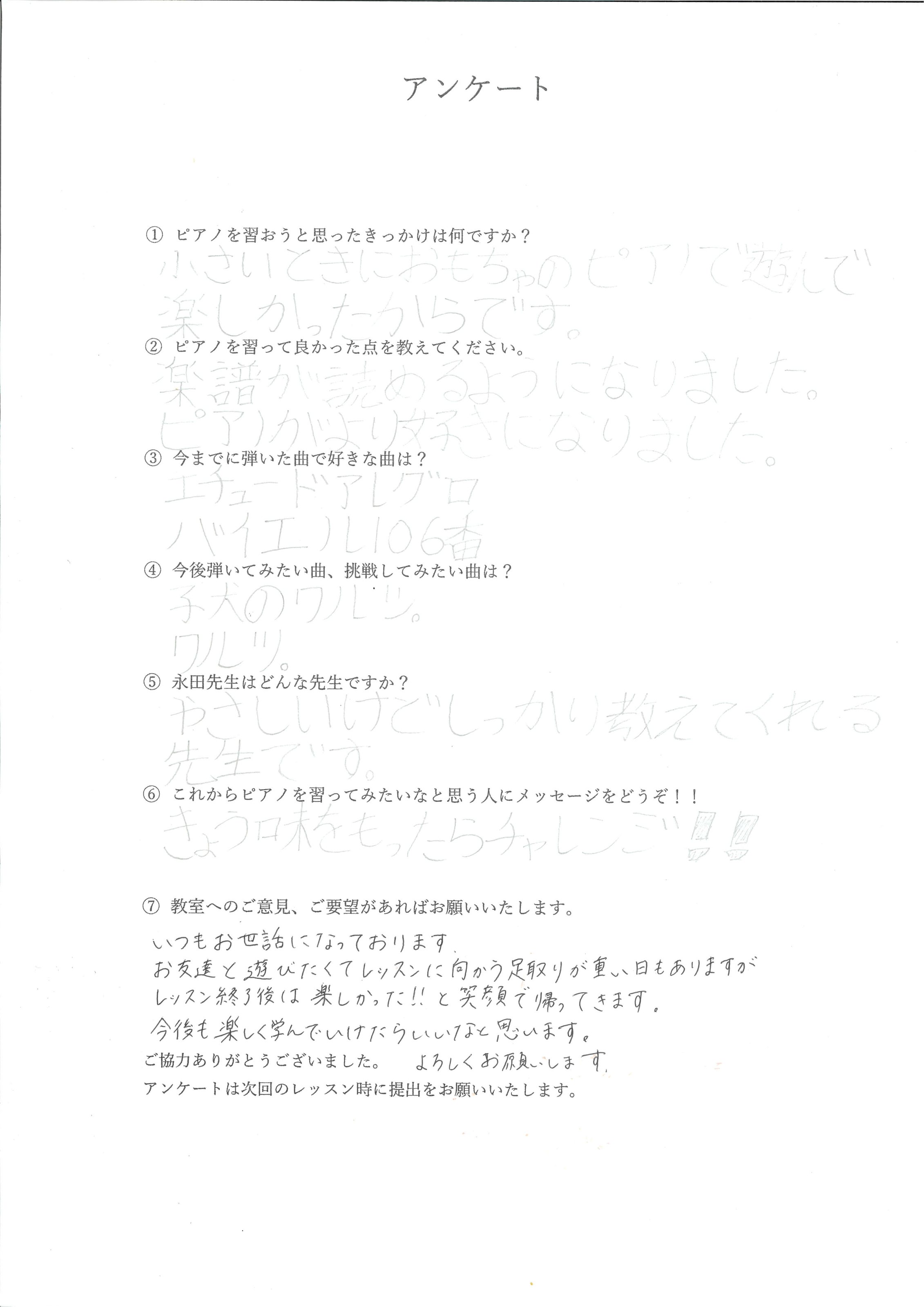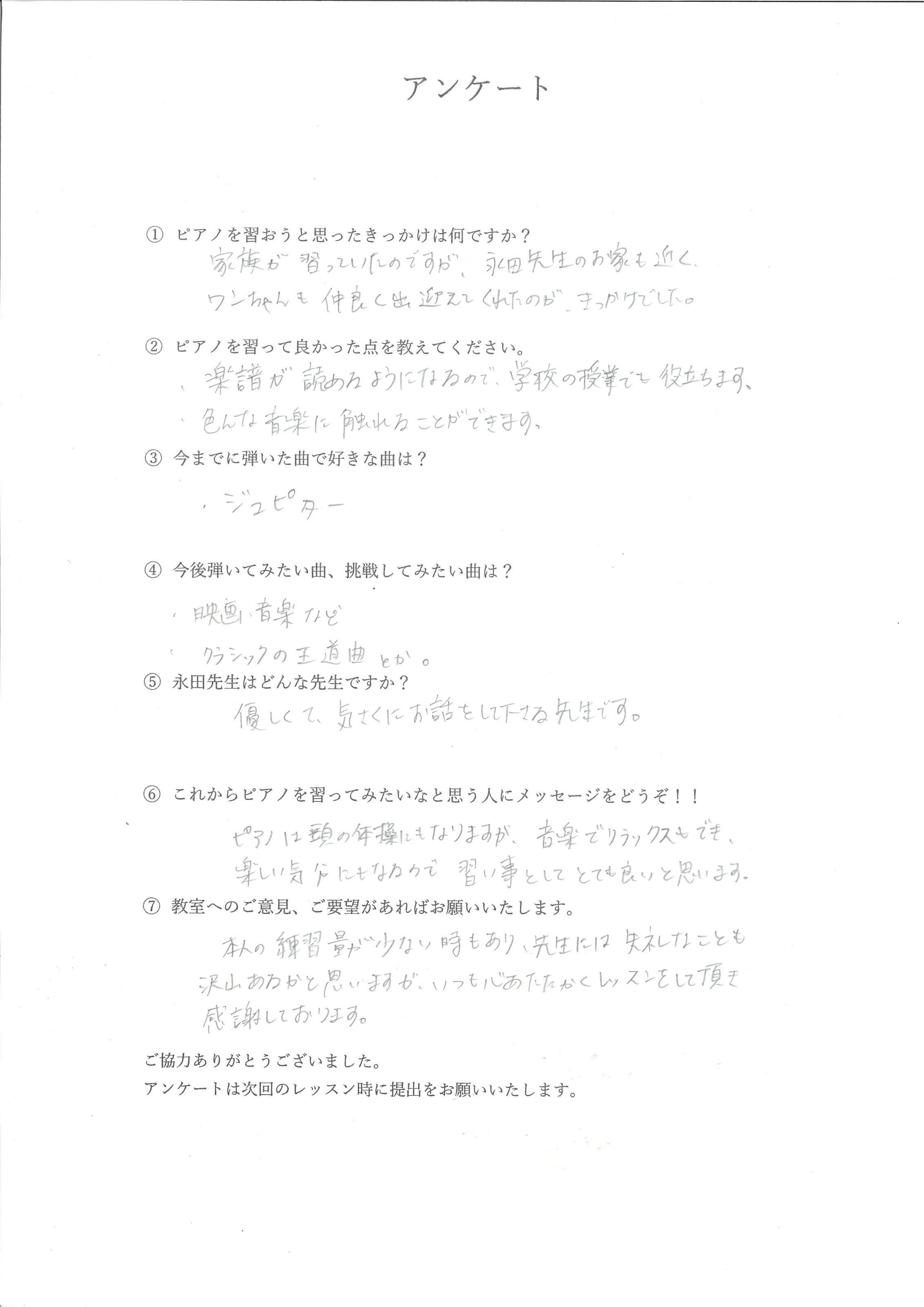 ピアノを習っている生徒様からのお声をまとめました。